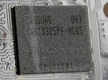 Объем памяти в 1280 мегабайт набран десятью микросхемами Samsung K4G10325FE-HC05.