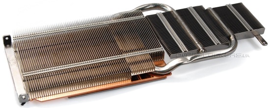 Откровенно говоря, после огромного по размерам видеоадаптера MSI N580GTX Lightning радиатор у Gigabyte GV-N580SO-15I кажется довольно мелким. Но, как мы увидим ниже, это не мешает системе охлаждения демонстрировать отличные результаты.
