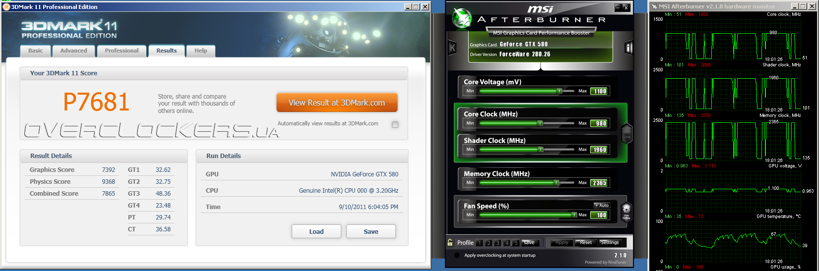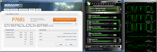 Разгон хороший, лучше результатов референсных GeForce GTX 580. Но и это не предел. Пройти тесты в 3DMark оказалось возможным и на больших частотах. Карта одолела тяжелый 3DMark 11 при частотной конфигурации 980/1960/4730 МГц.