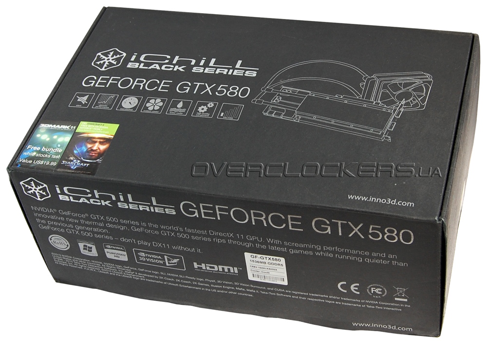 В линейке продуктов Inno3D она не единственная. Ранее на страницах нашего сайта мы рассматривали адаптер iChill GeForce GTX 570 Black, который порадовал очень низким уровнем шума и рабочими температурами, хотя для серьезного разгона потенциала установленной СВО уже не хватало. Посмотрим, как проявит себя старший брат.