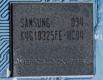 Полтора гигабайта видеопамяти набраны 12 микросхемами Samsung K4G10325FE-HC04.