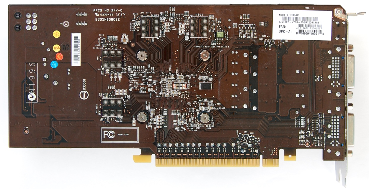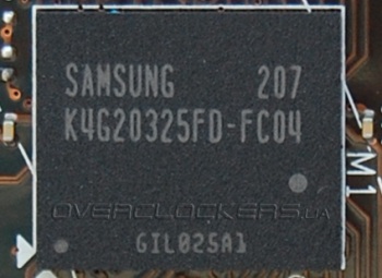 Один гигабайт видеопамяти набран четырьмя микросхемами Samsung K4G20325FD-FC04.