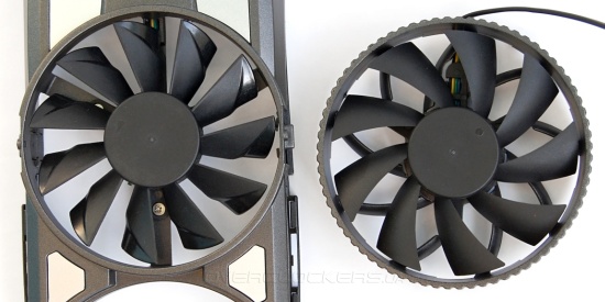 Оба вентилятора от Power Logic типоразмера 92 мм. Основной оснащен фирменными «лезвиями» по краям лопастей, что характерно для систем охлаждения Twin Frozr III. Форма лопастей у дополнительного вентилятора обычная. Максимальная скорость вращения составляет 3500 об/мин.