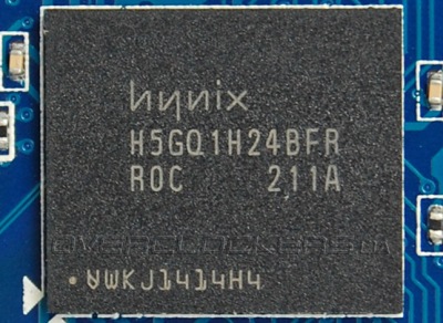 Микросхемы памяти Hynix H5GQ1H24BFR распаяны с обеих сторон платы.