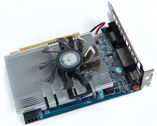 Радиатор чуть выходит за пределы платы. В районе графического чипа распаяна пара танталовых конденсаторов, чего не было у Inno3D.