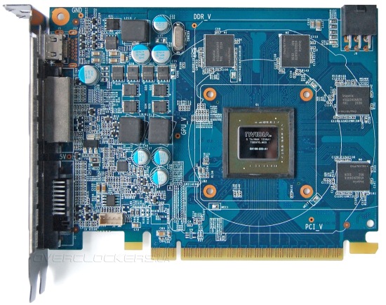 Плата выполнена по референсному дизайну. В сравнении с видеоадаптером Inno3D в данном случае распаяно по два транзистора на фазу, используются более качественные компоненты в цепи питания, заметно большее число элементов в обвязке внешних разъемов.