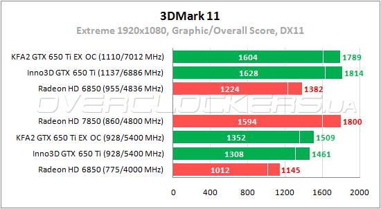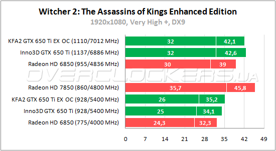 | Видеоадаптер | KFA² GTX 650 Ti EX OC | Inno3D GTX 650 Ti | Radeon HD 7850 | Radeon HD 6850 |