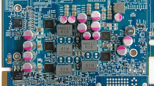 Питание GPU реализовано по пятифазной схеме на микросхемах DrMOS производства Renesas Technology под управлением контроллера CHil CHL8225G. Специального радиатора для этих компонентов не предусмотрено.
