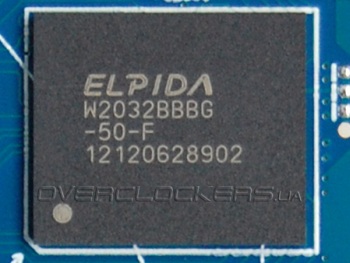 Два гигабайта памяти набраны восемью микросхемами Elpida W2032BBBG-50-F.
