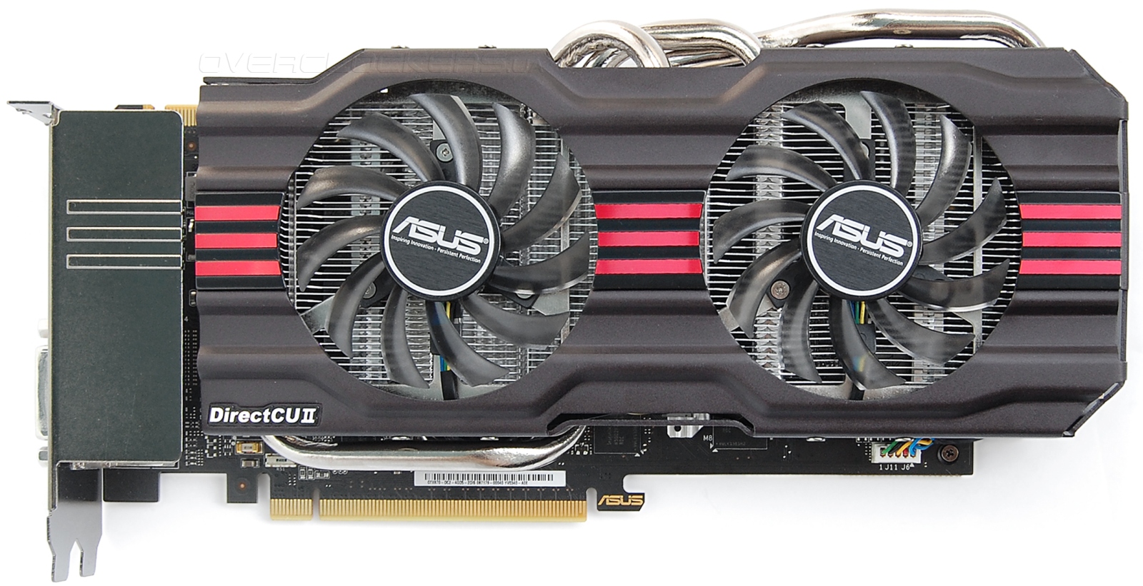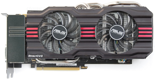 Система охлаждения типовая для всех старших GeForce от ASUS двухслотового формата. Точно такой охладитель мы видели у GTX670-DC2T-2GD5, GTX660 TI-DC2-2GD5 и GTX660-DC2O-2GD5.