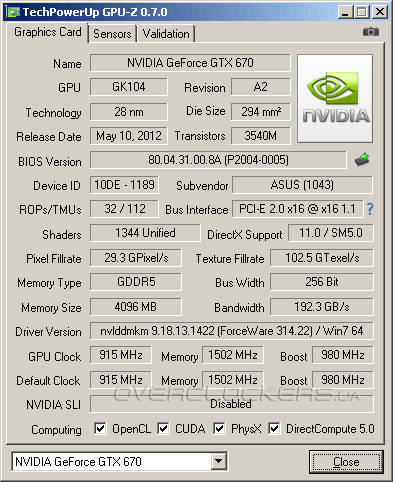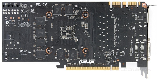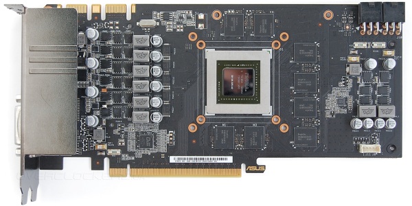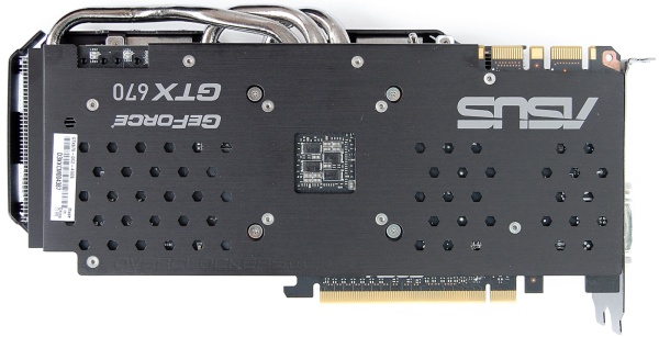 Дизайн платы полностью повторяет ASUS GTX670-DC2T-2GD5 за исключением удвоенного количества чипов памяти.