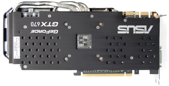 Сбоку расположены два шестиконтактных разъема питания, как и у обычной версии GeForce GTX 670.