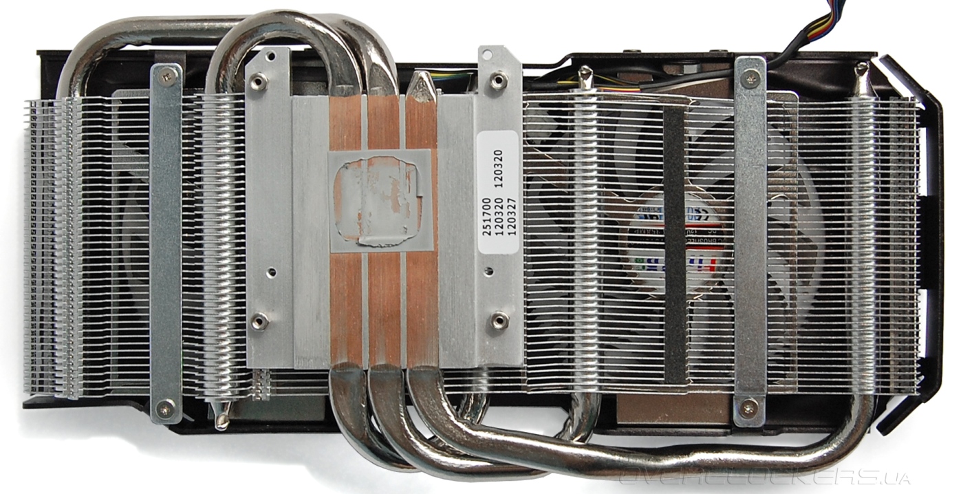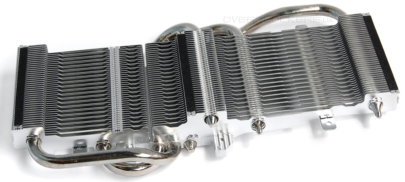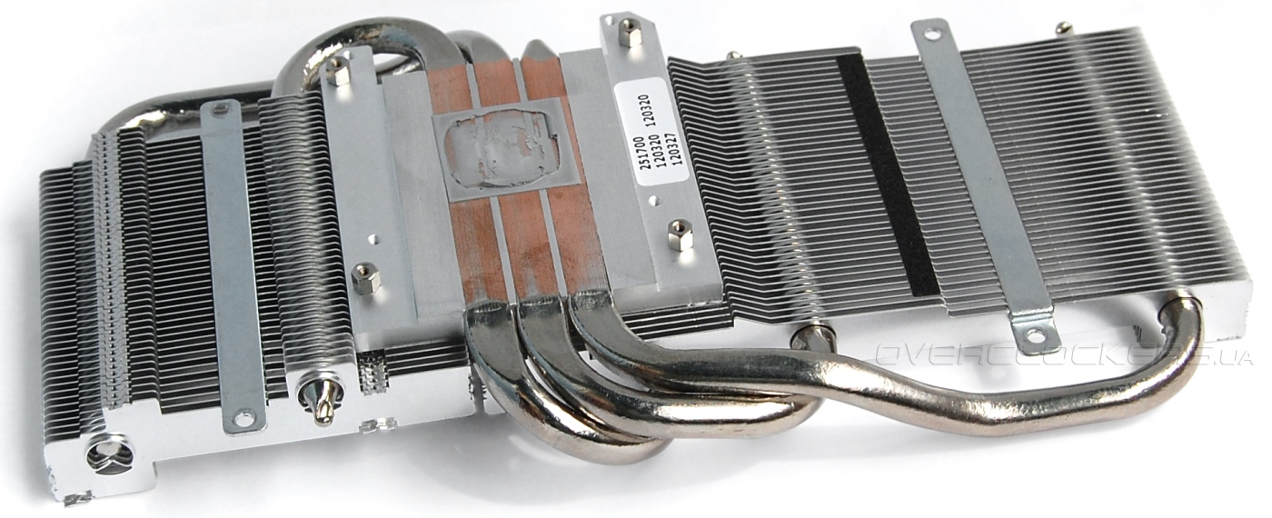 Радиатор системы охлаждения является цельным, а не разбит на две секции, как это было в старой версии двухслотового кулера DirectCU II. Ряд пластин пронзают три тепловые трубки, напрямую контактирующие с поверхностью графического кристалла.