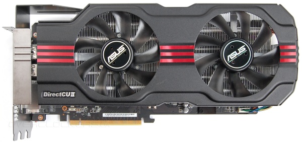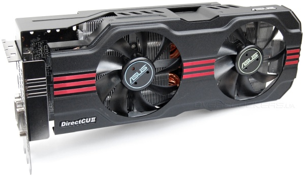 Внешне — это полная копия упоминавшегося уже видеоадаптера ASUS GTX680-DC2T-2GD5. Сбоку прикручено большое ребро жесткости.