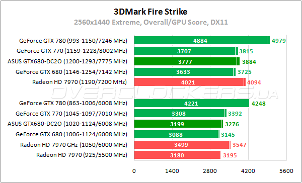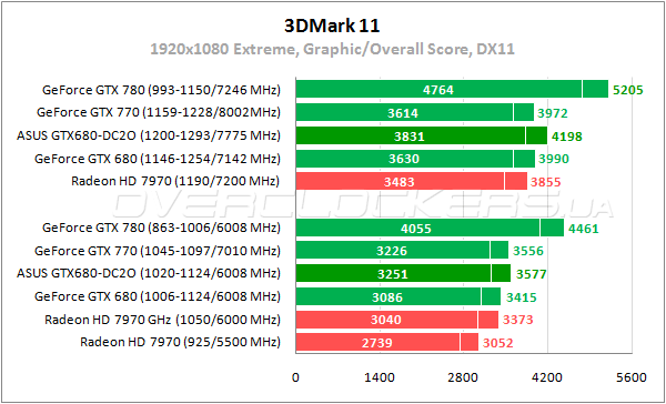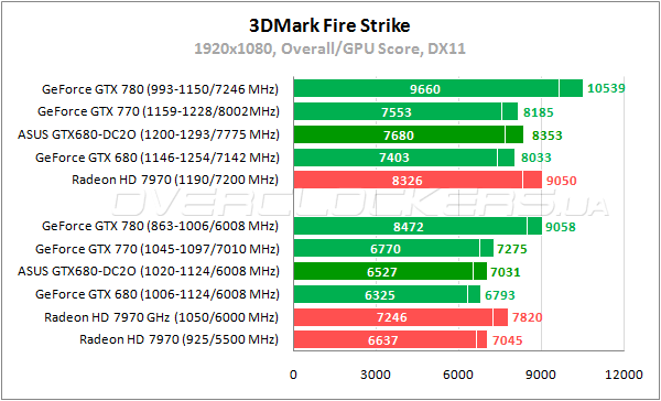 ASUS GTX680-DC2O-2GD5 одерживает вверх над GeForce GTX 770 не только при разгоне, но и в номинале.