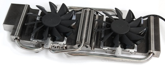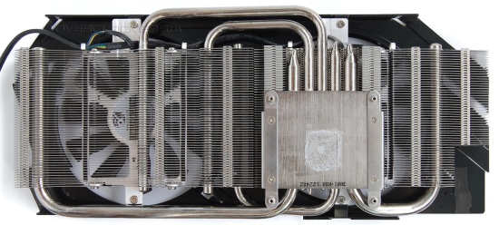 Система охлаждения не предлагает ничего нового и оригинального. Конструкция кулера со времени R7970 Lightning не изменилась. Массивное основание, пять тепловых трубок и большой радиатор из плотно подогнанных друг к другу пластин.