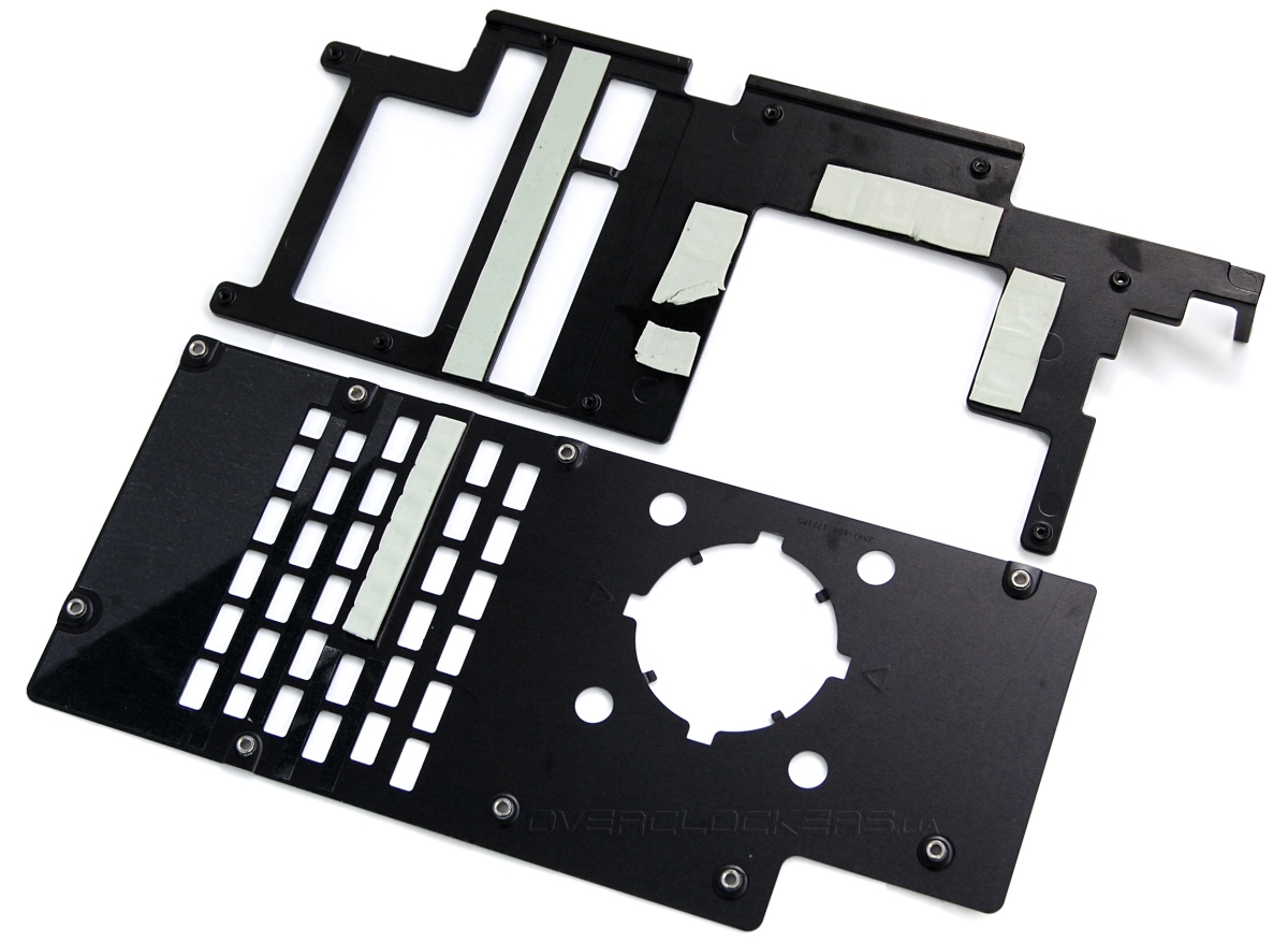Пластина с задней стороны платы тоже выступает в роли радиатора, контактируя с элементами через термопрокладку. Получается бутерброд из двух пластин и платы между ними. Это полностью предотвращает возможность изгиба текстолита.