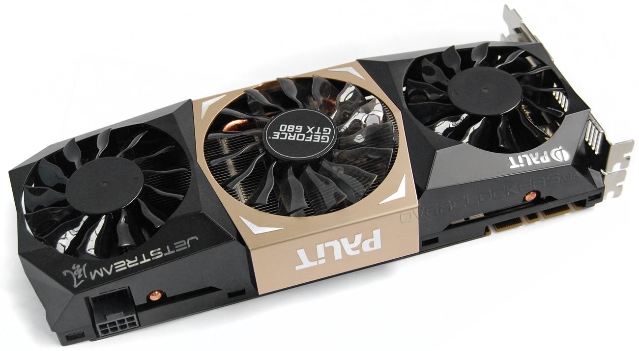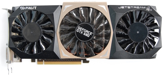 Для начала рассмотрим нереференсный GeForce GTX 680 от Palit. Видеоадаптер оснащен мощным охлаждением и работает на повышенных частотах. Но для нашего сравнения мы протестируем его не только на заводских частотах, но и при понижении их до рекомендованных значений, чтобы сравнить конкурентов в одинаковых условиях.