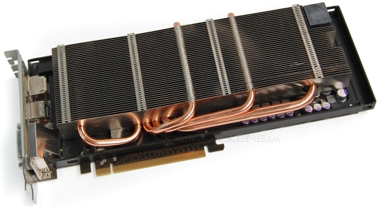 Под кожухом скрыт массивный радиатор, простирающийся почти во всю длину карты. Нужно отметить, что он заметно больше радиатора упоминавшегося выше Palit GTX 660 Ti JetStream.