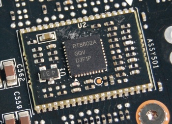 Питанием графического процессора управляет контроллер Richtek RT8802A, который распаян на небольшой дочерней плате.