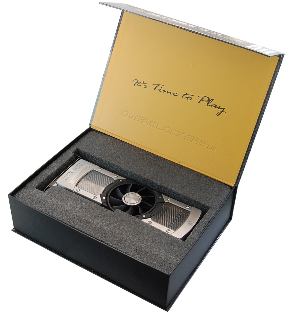 Продукт топовый, можно даже сказать имиджевый. Первые семплы GTX 690 рассылались по тестовым лабораториям в деревянной коробке с ломиком. Наша же видеокарта серийная, поэтому такой оригинальностью упаковки не отличается. Хотя оформление коробки бедным не назвать.