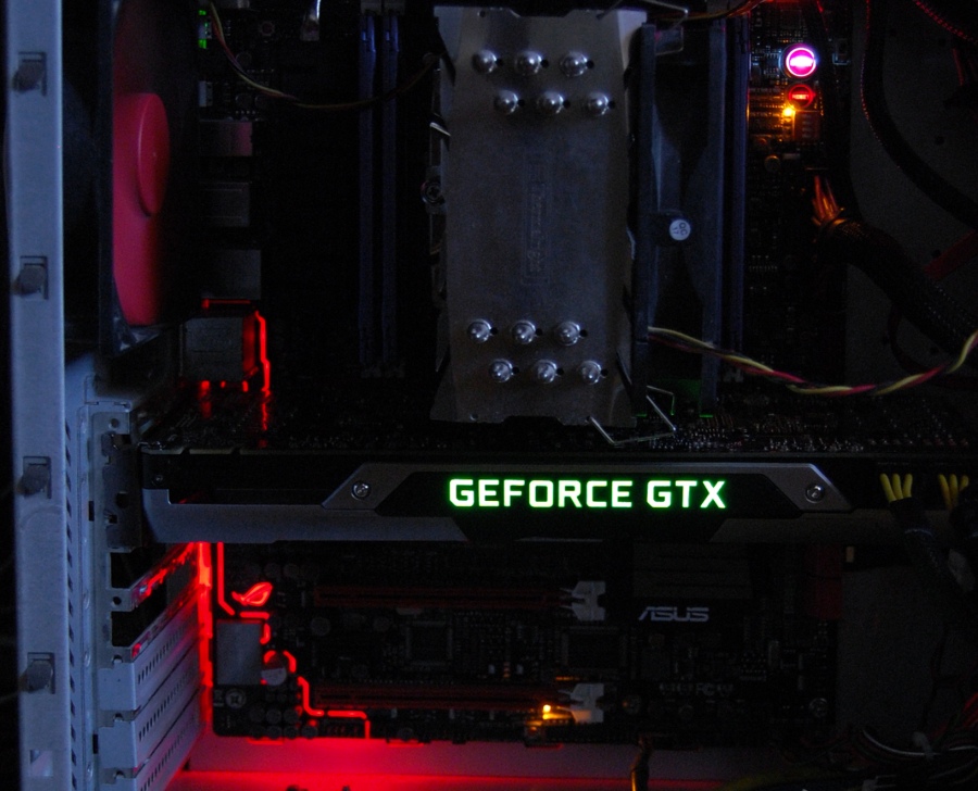 Сбоку имеется вставка с большой надписью GeForce GTX.