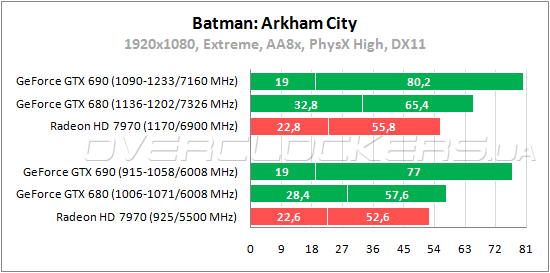 Для начала рассмотрим результаты тестирования видеокарт в Batman: Arkham City без эффектов PhysX.
