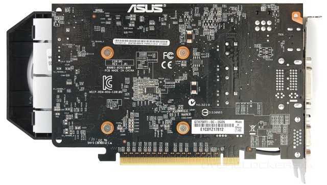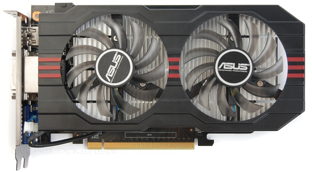 Внешне новая модель ничем не отличается от типичного представителя бюджетного сегмента с двумя вентиляторами в исполнении ASUS. Визуальных отличий от R7260-1GD5 или GTX650TI-1GD5 нет.
