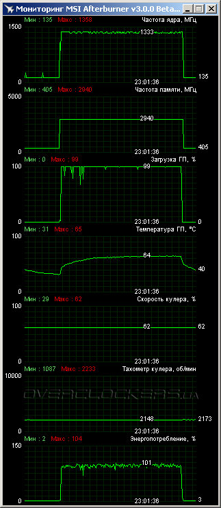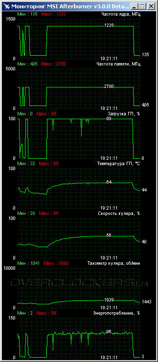 Для повышения стабильности обороты обдувающих вентиляторов немного увеличивались до уровня 2150–2200 об/мин. Уровень шума при этом был средний. Характеристики тестируемых видеокарт