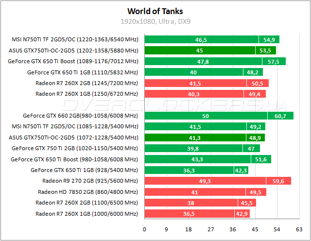 Теперь Radeon HD 7850 обходит ASUS GTX750TI-OC-2GD5 на 3%. Но последний легко компенсирует это разгоном.