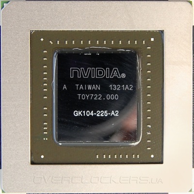 Графический процессор GK104-225-A2 окружен защитной рамкой.
