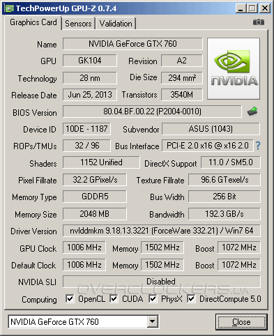 Результаты разгона GPU самые низкие на фоне всех прочих моделей GeForce GTX 760, с которыми мы ранее имели дело. Базовую частоту удалось поднять на 100 МГц, что обеспечило стабильные 1215 МГц в Boost. Зато память одолела 7160 МГц, что вполне неплохо.