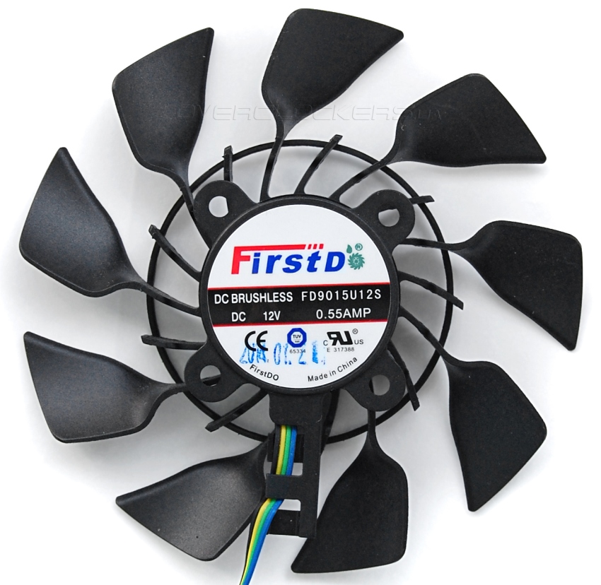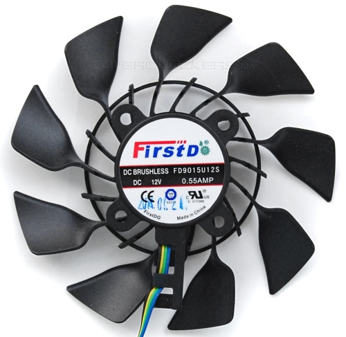 Оба вентилятора несут маркировку FirstD FD9015U12S. Но если электрическая часть у них идентичная, то конструкция крыльчатки абсолютно разная. В наших обзорах уже не раз писалось об этом, но повторю еще раз. Самый необычный вентилятор расположен ближе к задней панели. Он сочетается конструктивные элементы осевых и радиальных моделей. Это позволяет улучшить обдув боковых секций (которых, правда, в данном случае нет) и частично выдувать отработанный воздух через вентиляционные отверстия задней панели за пределы корпуса.