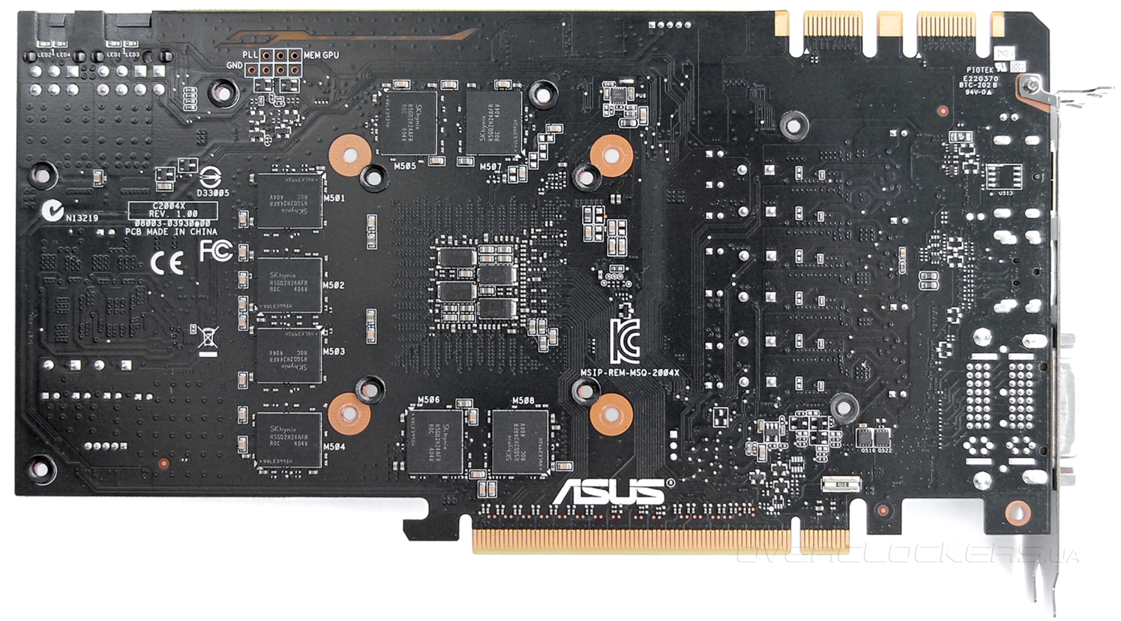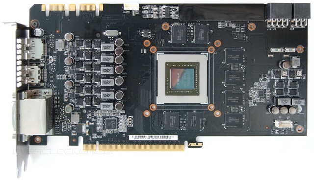 Она длиннее референсных версий, да и элементов больше. Сразу обращает на себя внимание большое количество микросхем памяти, что связано с увеличенным до четырех гигабайт объемом буфера. Очень напоминает ASUS GTX670-DC2T-2GD5.