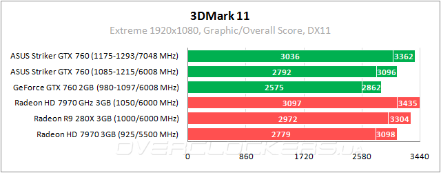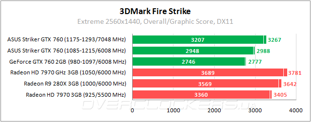 GeForce GTX 760 теряет позиции в Fire Strike. Даже при разгоне ASUS уступает 4% самому простому Radeon.