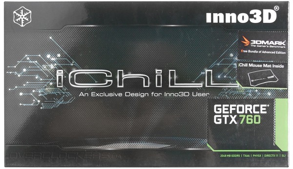 Знакомство с Inno3D iChill GeForce GTX 760 HerculeZ 3000 начнем с осмотра упаковки и комплектации. Поставляется адаптер в большой глянцевой коробке.