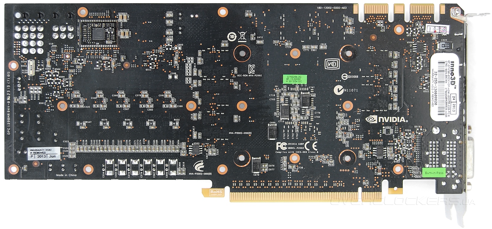 Еще один сюрприз от Inno3D — дизайн печатной платы. iChill GTX 760 копирует референсный GeForce GTX 680. Причем копия эта даже лучше оригинала, ведь у многих GeForce GTX 680 одна фаза не распаивалась, а у данного видеоадаптера все на месте.