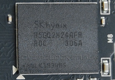 Два гигабайта памяти набрано восемью микросхемами памяти SKhynix H5GQ2H24AFR R0C.