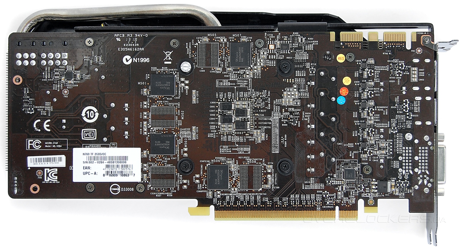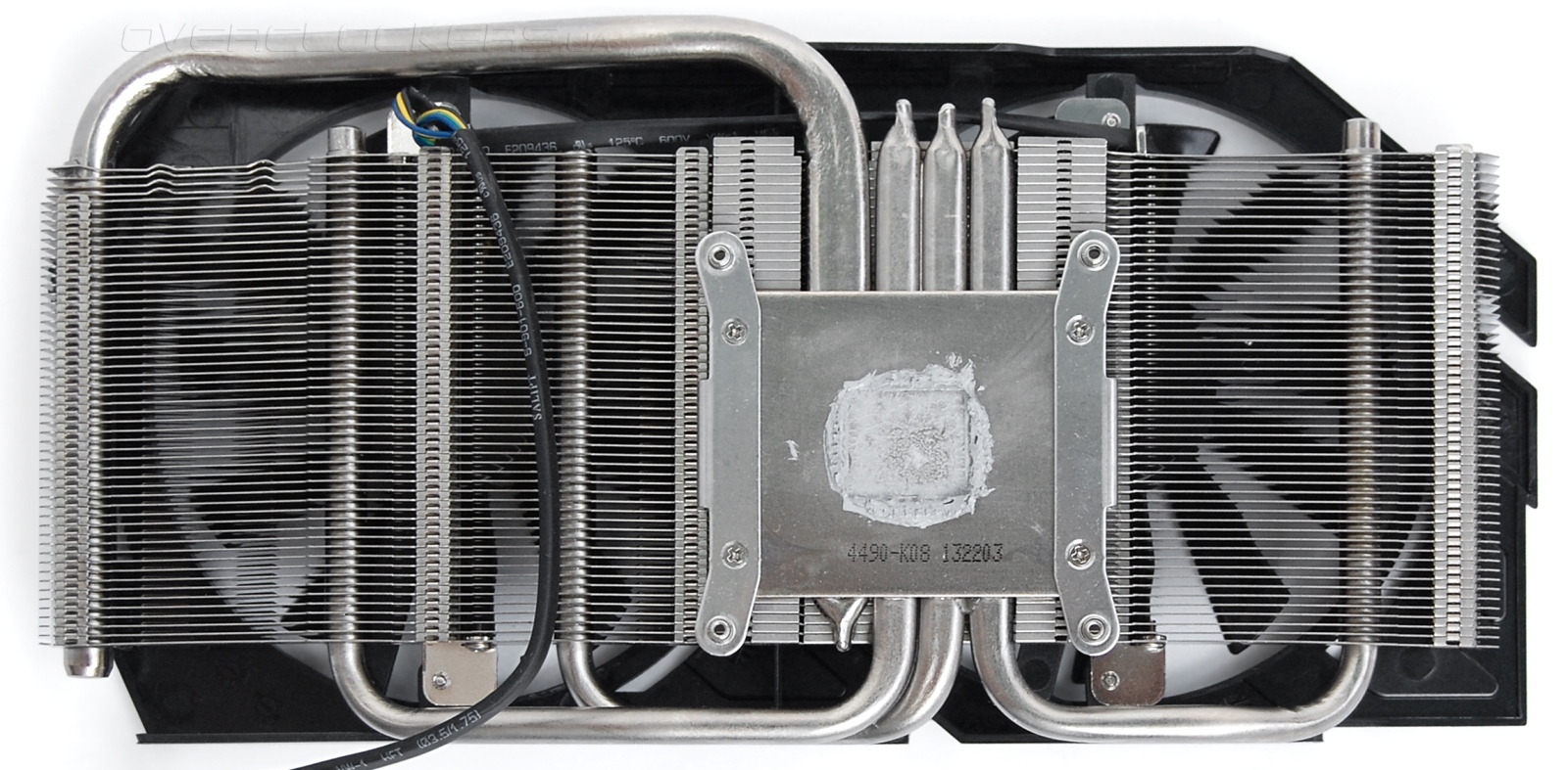 Конструкция системы охлаждения почти полностью повторяет строение охладителя старшего MSI GeForce GTX 770. Только вместо пяти тепловых трубок теперь используется четыре.