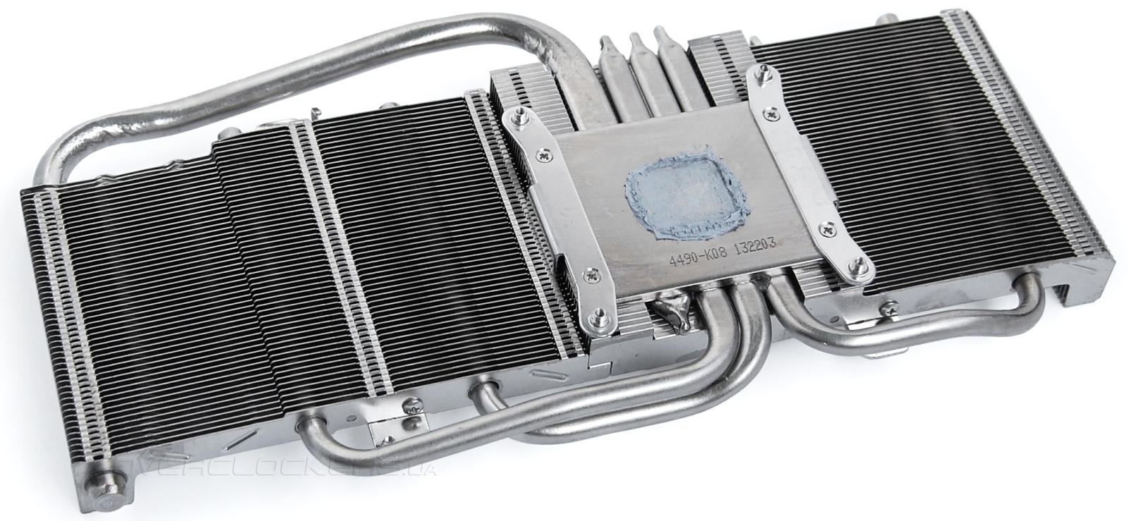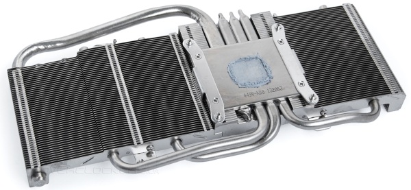 Радиатор набран из 53 тонких алюминиевых пластин. Толщу пластин кроме трубок в некоторых местах пронизывают пластины-дефлекторы, направляющие воздушный поток на обдув наиболее критичных мест печатной платы.
