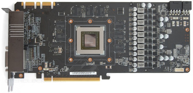 На дизайне платы, в отличие от охлаждения, экономить не стали. Перед нами копия старых флагманов ASUS — GTX680-DC2O-2GD5 и GTX680-DC2T-2GD5.