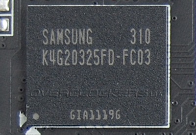 Три гигабайта памяти набраны 12 микросхемами Samsung K4G20325FD-FC03.