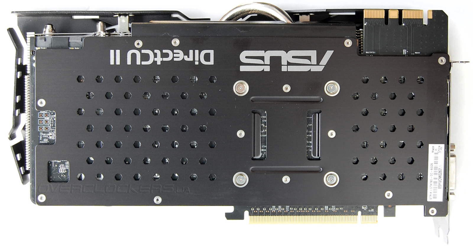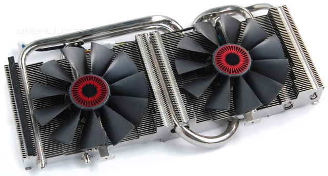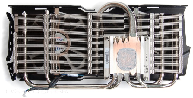 Под новым кожухом скрывается знакомая система охлаждения. Типичный кулер DirectCU II с пятью тепловыми трубками, которые напрямую контактируют с поверхностью графического ядра.