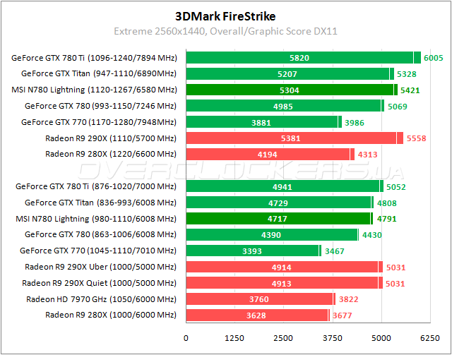 Тут Radeon R9 290X может составить конкуренцию только простой версии GeForce GTX 780. Lightning быстрее конкурента AMD на 13–14% и лучше Titan на 4–5%. В разгоне преимущество над этими соперниками сохраняется.