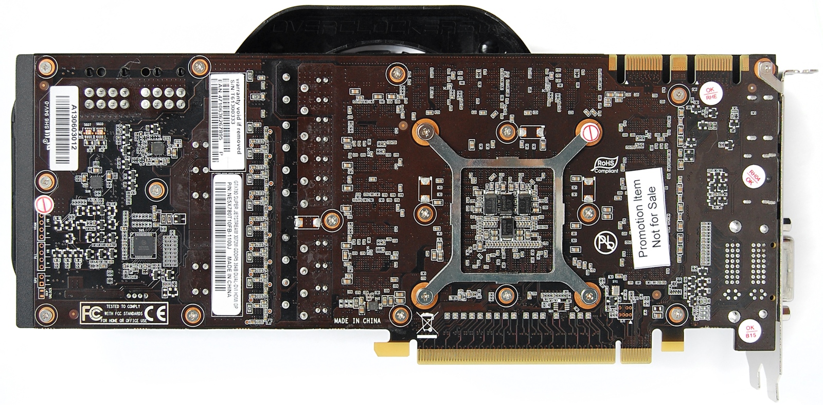 Кулер немного увеличивает общую длину видеокарты (до 28 см) и заметно выдается вбок. На одном из фиксирующих винтов имеется гарантийная пломба. Так что полный демонтаж системы охлаждения чреват потерей гарантии.