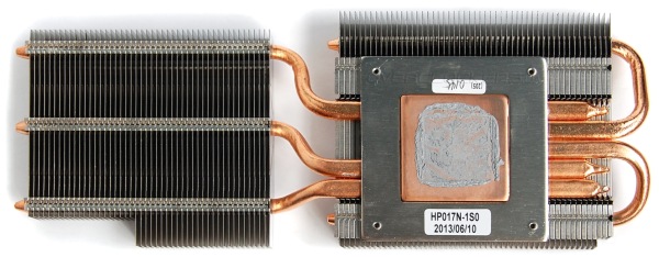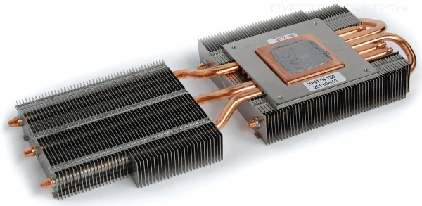 В радиаторе используется пять медных тепловых трубок стандартного диаметра 6 мм. Они напаяны на медную площадку, контактирующую с кристаллом GPU.