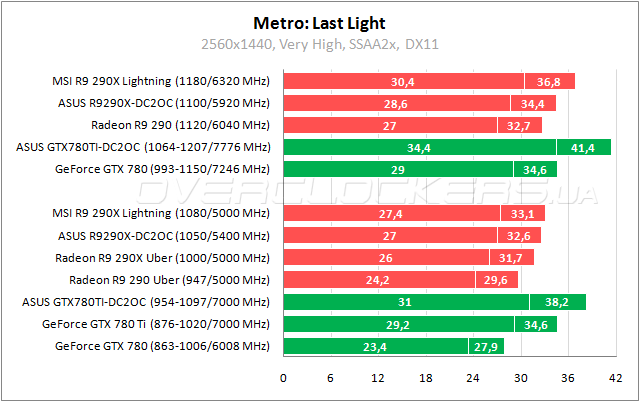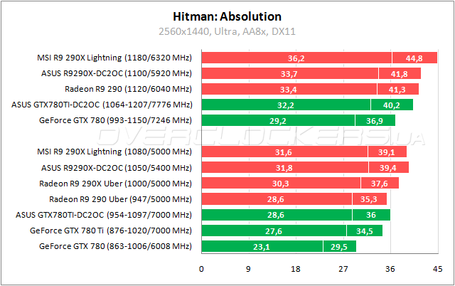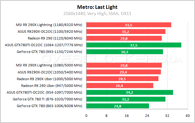 В Absolution очень сильны позиции AMD. ASUS обгоняет только Radeon R9 290, причем, с минимальным перевесом.