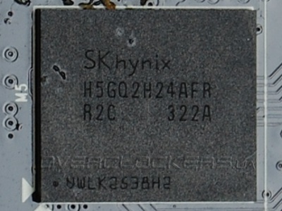 Объем видеобуфера в три гигабайта набран 12 микросхемами SKhynix H5GQ2H24AFR R2C.