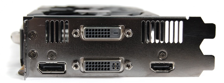 На задней панели четыре интерфейсных разъема для подключения мониторов: два DVI, по одному DisplayPort и HDMI.