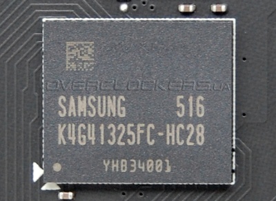 Два гигабайта памяти набраны четырьмя микросхемами Samsung K4G41325FC-HC28.